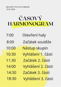 Časový harmonogram je pouze orientační, prosíme aby byly všichni připraveni cca hodinu před zahájením.